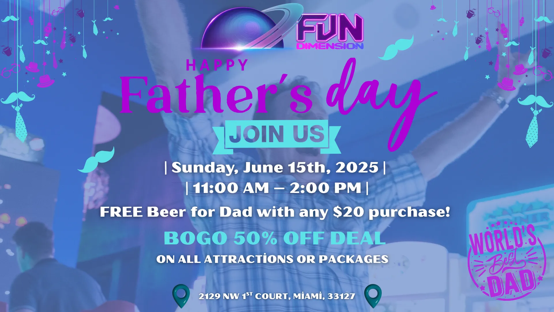 Celebrate Father’s Day at FunDimension! This June 15th, give Dad a day to remember! Join us from 11:00 AM to 2:00 PM for a fun-filled Father’s Day celebration at FunDimension.