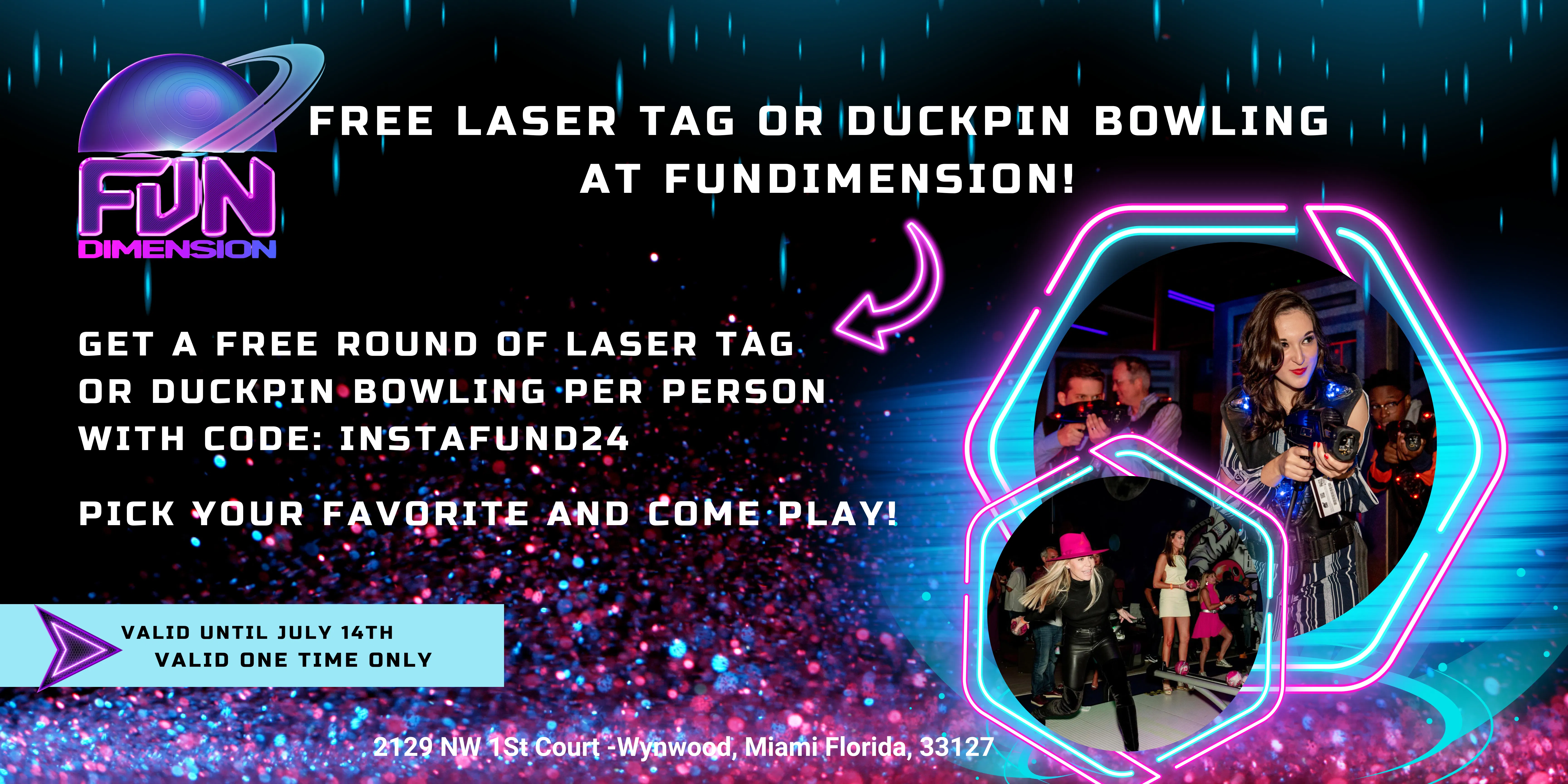 Free Laser Tag OR Duckpin Bowling at FunDimension in July!